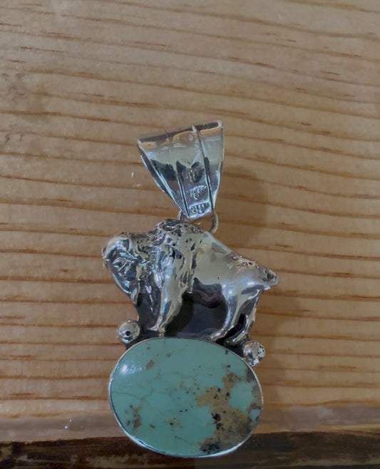 Native American Handmade Turquoise Buffalo Pendant – Sterling Silver