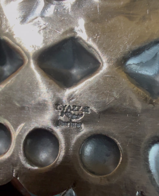 Native American Handmade Sterling Silver Concho Stud Earrings with Turquoise by L. Yazie – Hand-Forged & Stamped